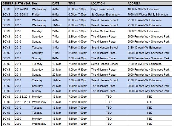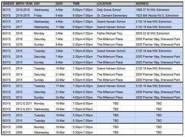 Boys Evaluations schedule